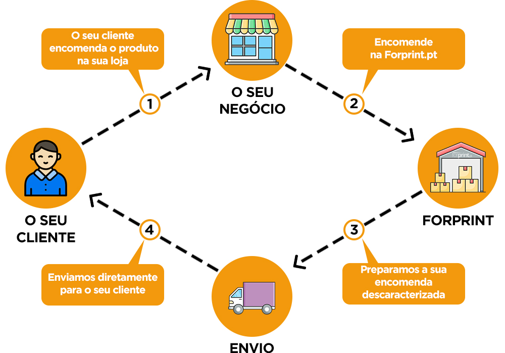 Com o nosso serviço de Dropshipping Forprint, você pode vender produtos online ou em lojas físicas sem necessidade de investir em stock ou gerir expedições. Comece hoje a vender!