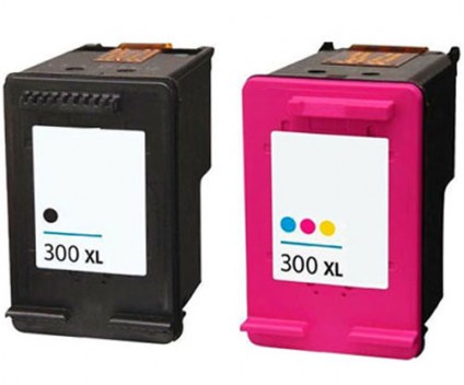 2 Tinteiros Compativeis, HP 300 XL Preto 20ml + Cor 18ml