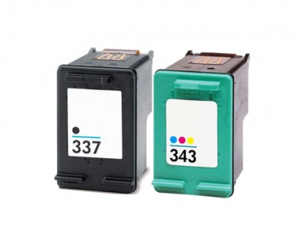 2 Tinteiros Compativeis, HP 337 Preto 18ml + HP 343 Cor 18ml