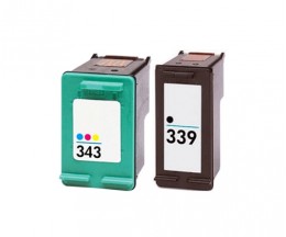 2 Tinteiros Compativeis, Hp 343 Cor 18ml + HP 339 Preto 25ml